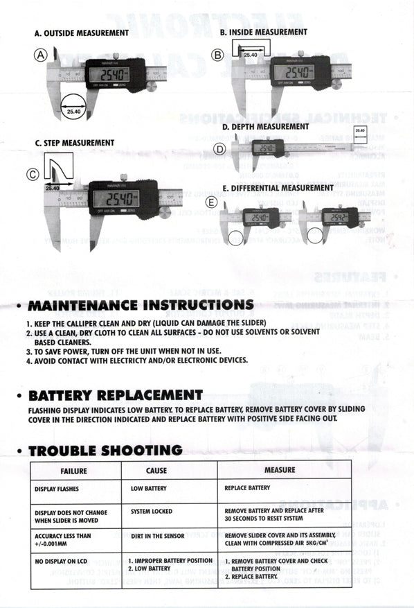 - 3-Way Measurement: External, Internal, Depth with SAE&Metric measurements