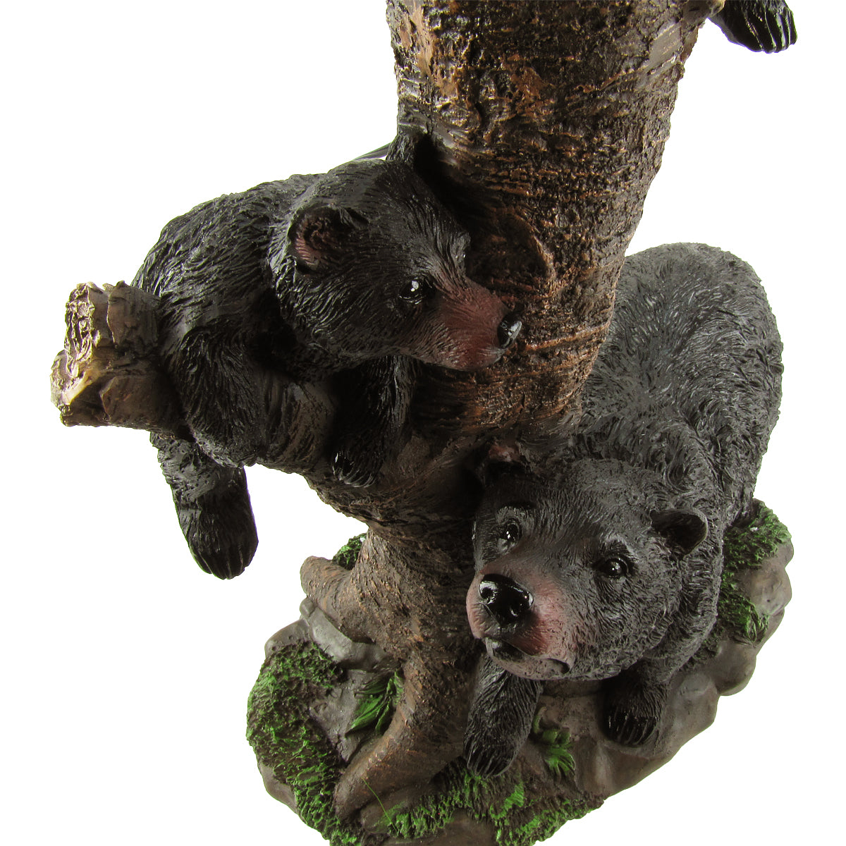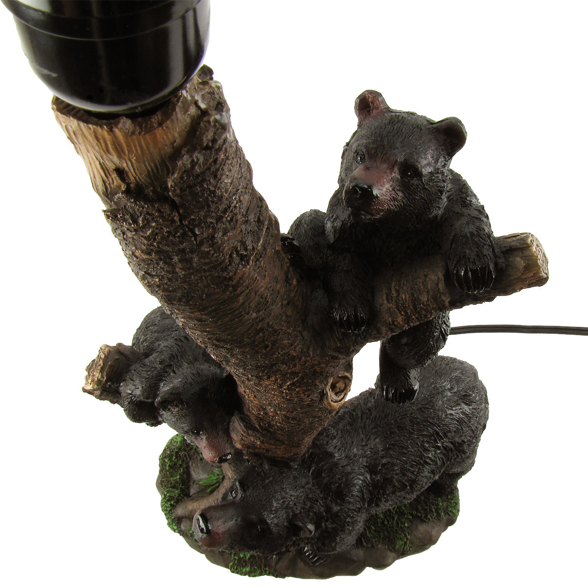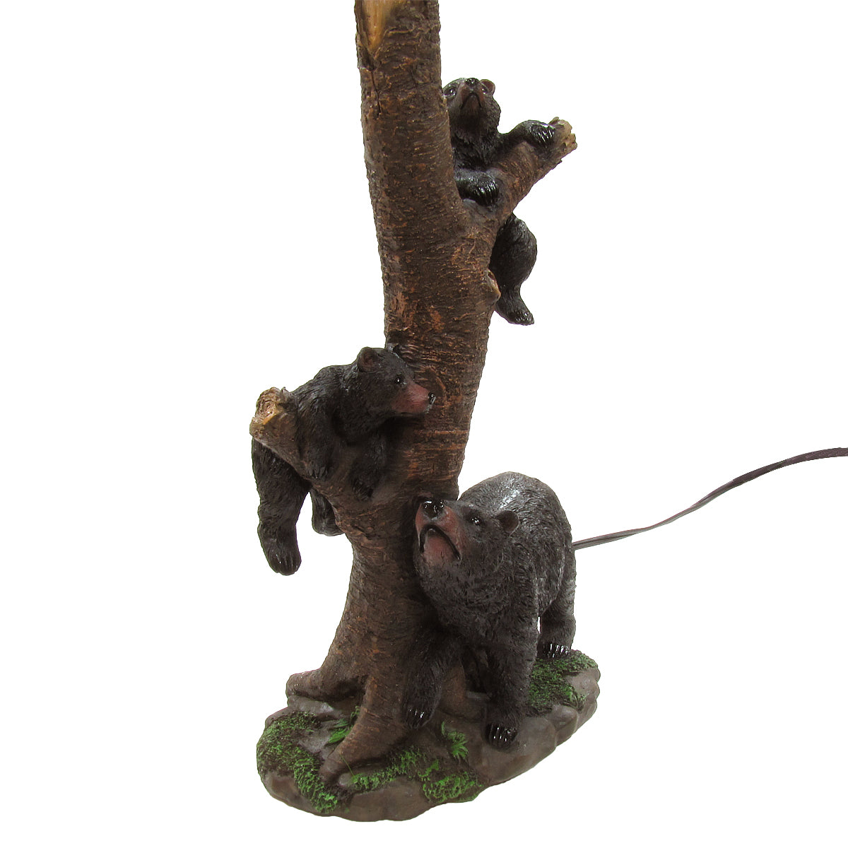 - The lamp features three bears, one mama bear w/ 2 cubs, climbing up the trunk of the lamp