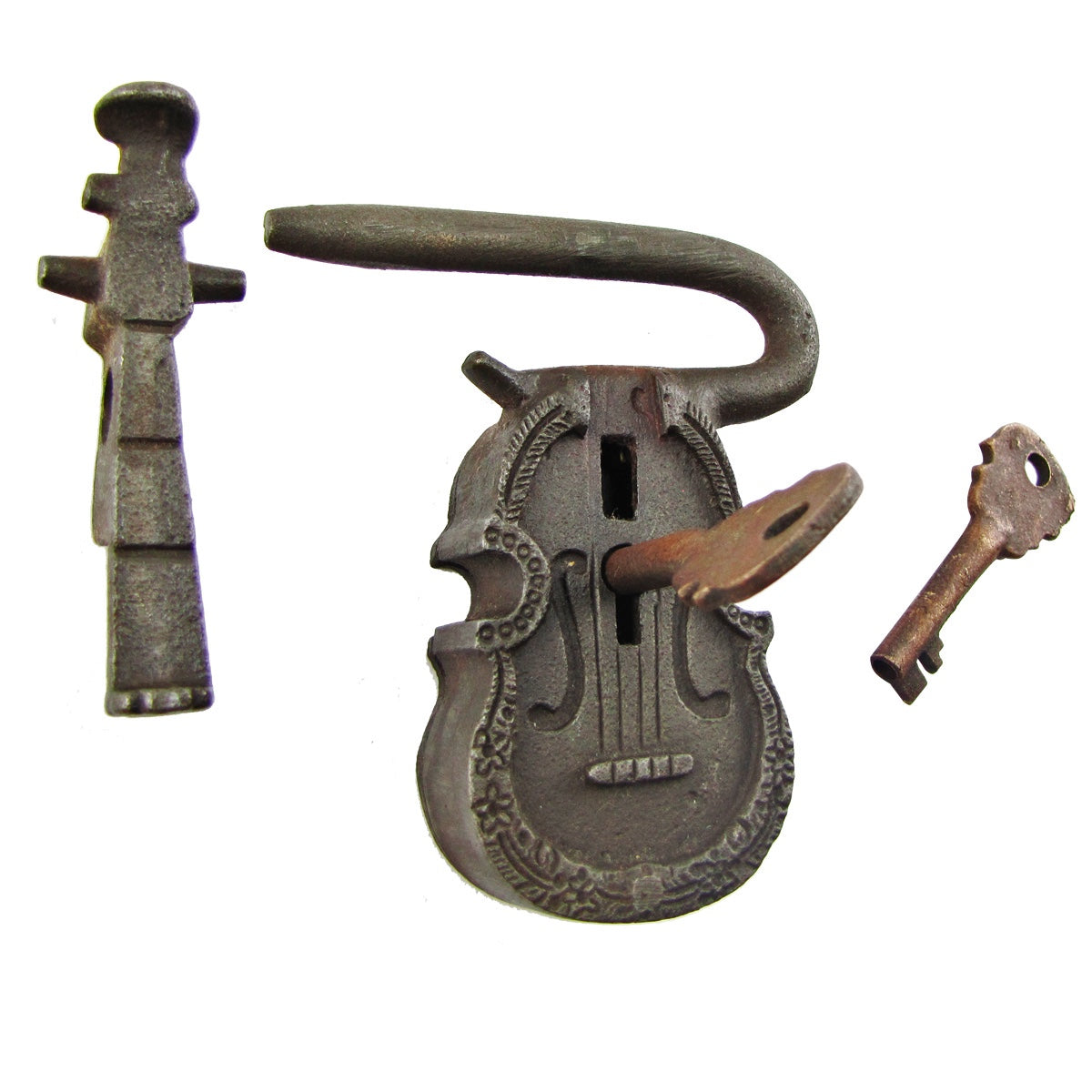 • Large Antique Style Cast Iron & Brass Violin Padlock Set with 2 keys ships brand new to you with our 100% customer service guarantee