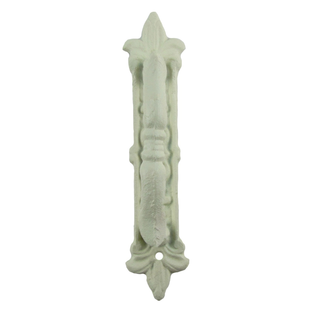 - At each end of this Cast Iron Door Handle has a Fleur De Lis design at the top and bottom of the piece