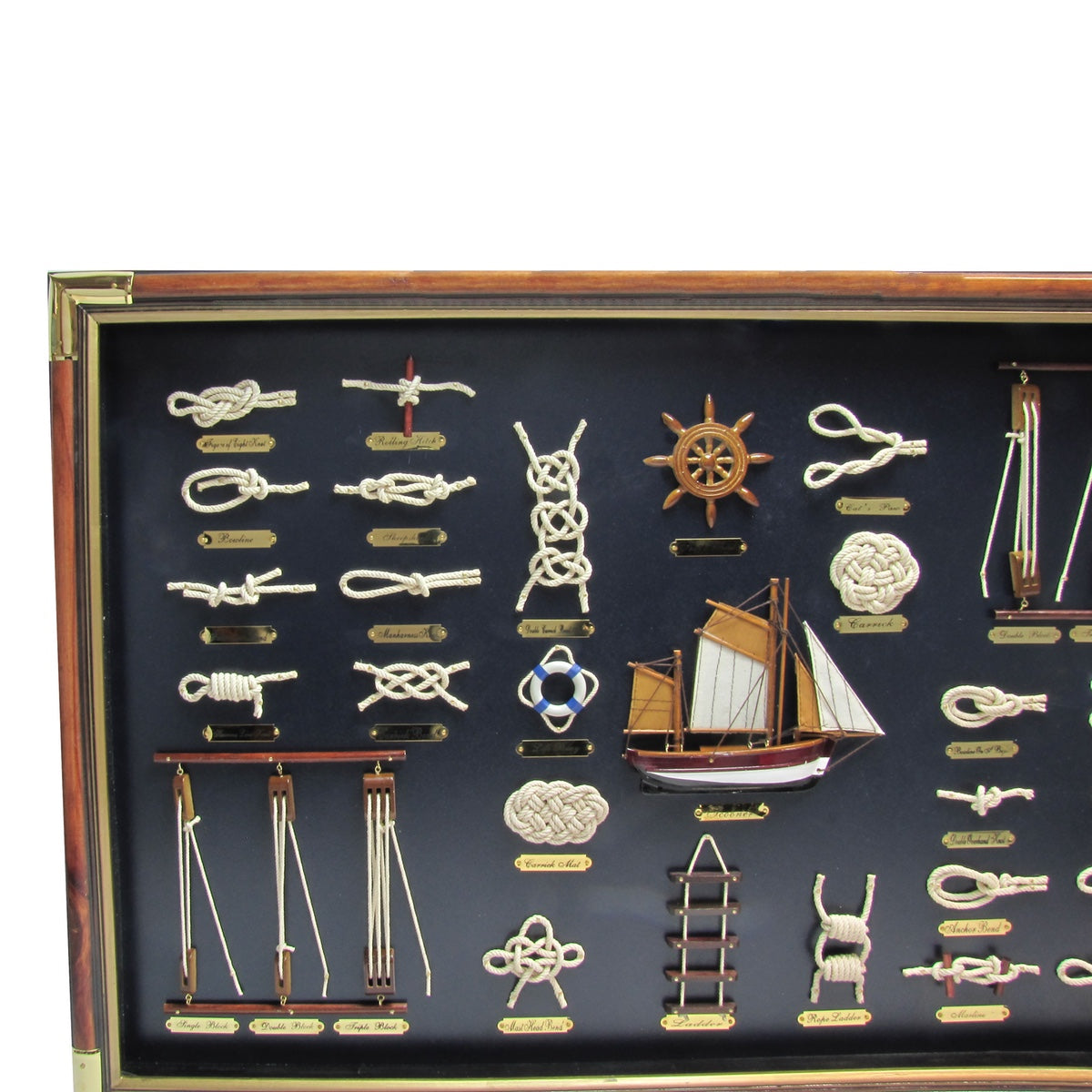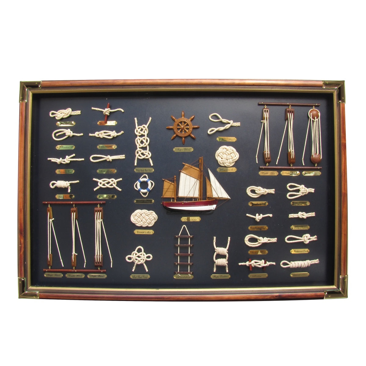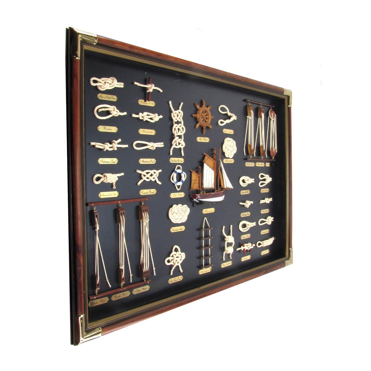 - The giant nautical home decor features over 20 different nautical knots, like the rolling hitch, deadeyes, and triple block, each named with a brass plaque under the knot or rigging