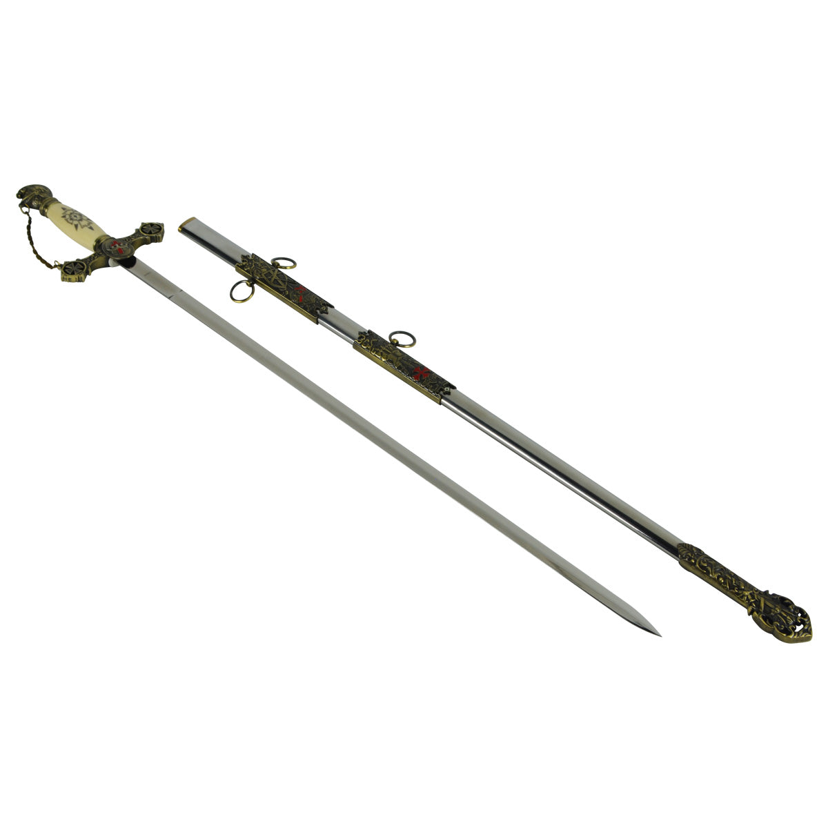 - Masonic Knights Templar Ceremonial Presentation reproduction sword, with ornate pommel and scabbard