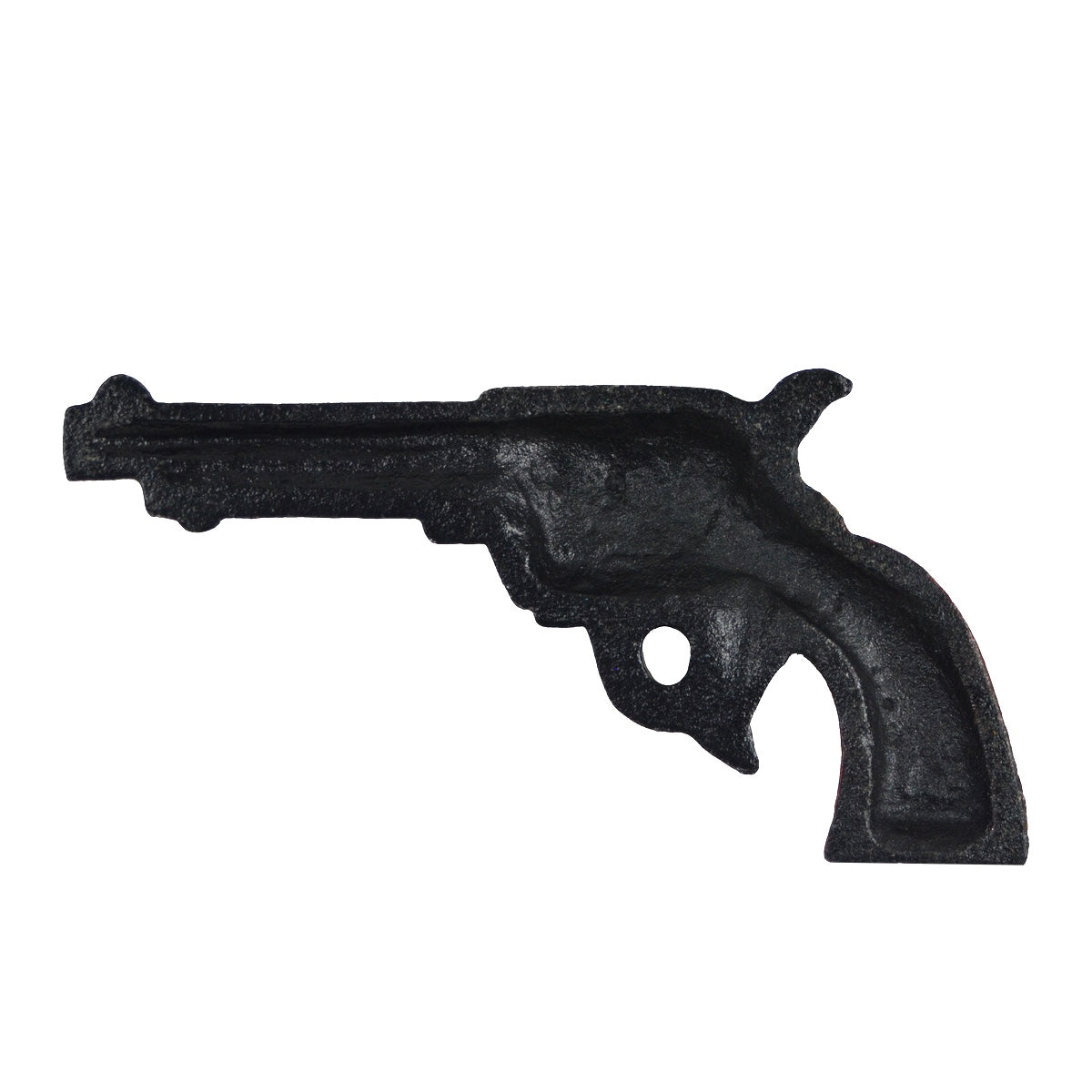 - Solid Cast Iron Hand Held Pistol Shaped Bottle Opener is both fully functional and durable