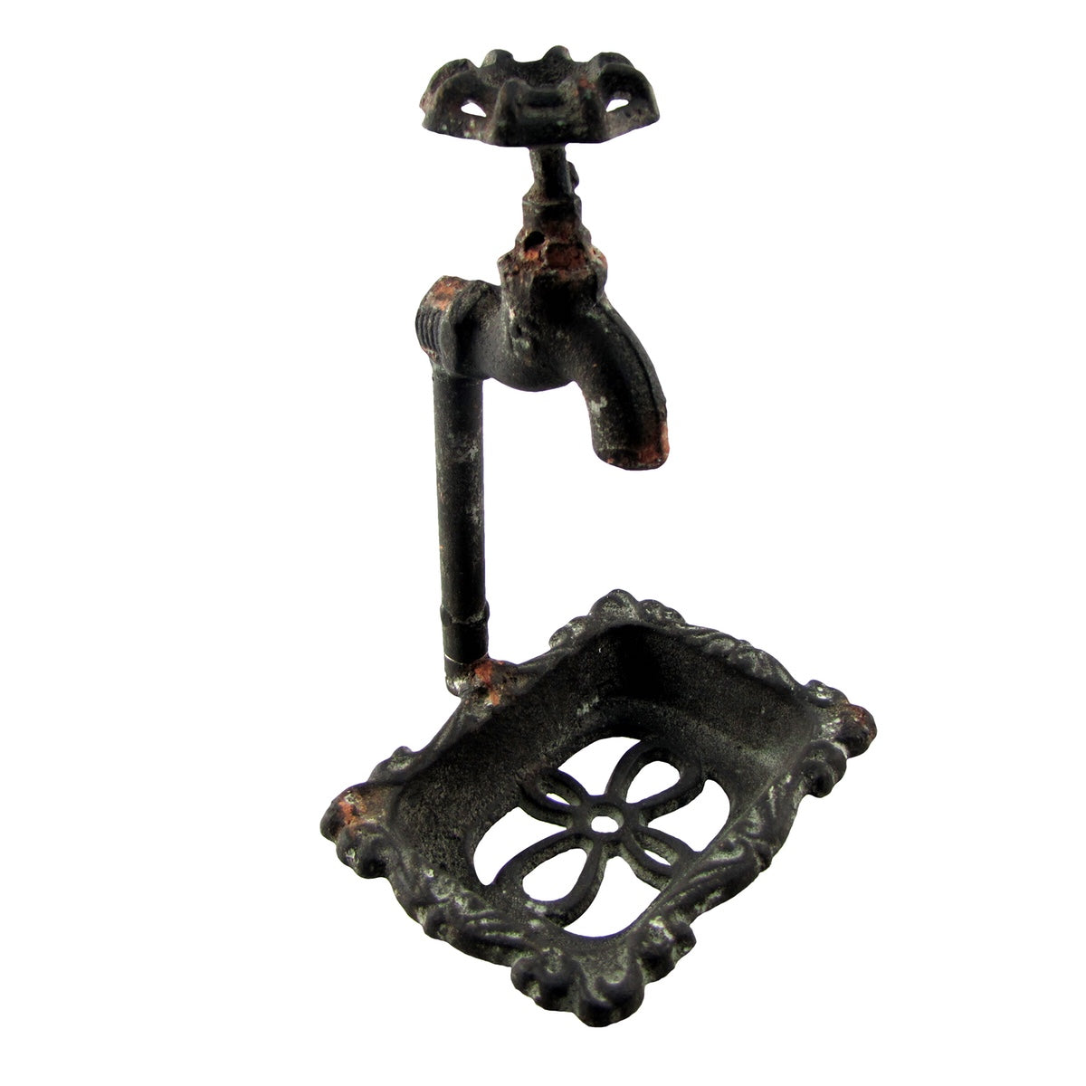 - Antique Farmhouse Style Old Garden Faucet Spigot Handle Shaped Soap Dish is sure to add Primitive decor to any kitchen or bath