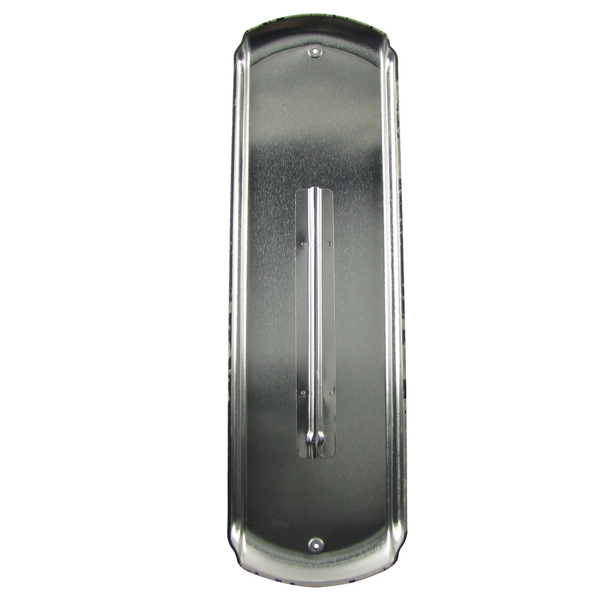 Add some farm decor inside your home or outdoors at your patio or garden with this Rise&Shine Rooster Thermometer. This is a brand new thermometer, distressed to look like a vintage reproduction, with great attention to detail and weathered look. The thermometer is in the style of a vintage primitive thermometer, featuring a rooster at the top of the thermometer, which reads "Rise and Shine". Made from heavy gauge tin with carefully rolled edges, the large Rooster thermometer adds great country chicken farm decor to your home, wherever you place it. Featuring a durable enamel finish that has been distressed to look as though this thermometer was out in the garden for a few years exposed to the elements, this thermometer is for use indoors or outdoors. Hang it outside at your patio, pool or garden, or inside your home in your kitchen or entry. Rise&Shine Rooster thermometer measures 17" Tall, 5" wide, and protrudes about 1" when mounted to the wall. Great primitive garden decor, this indoor/outdoor Rise&Shine Rooster thermometer ships brand new in manufacturer's packaging, with our 100% Customer Satisfaction Guarantee.