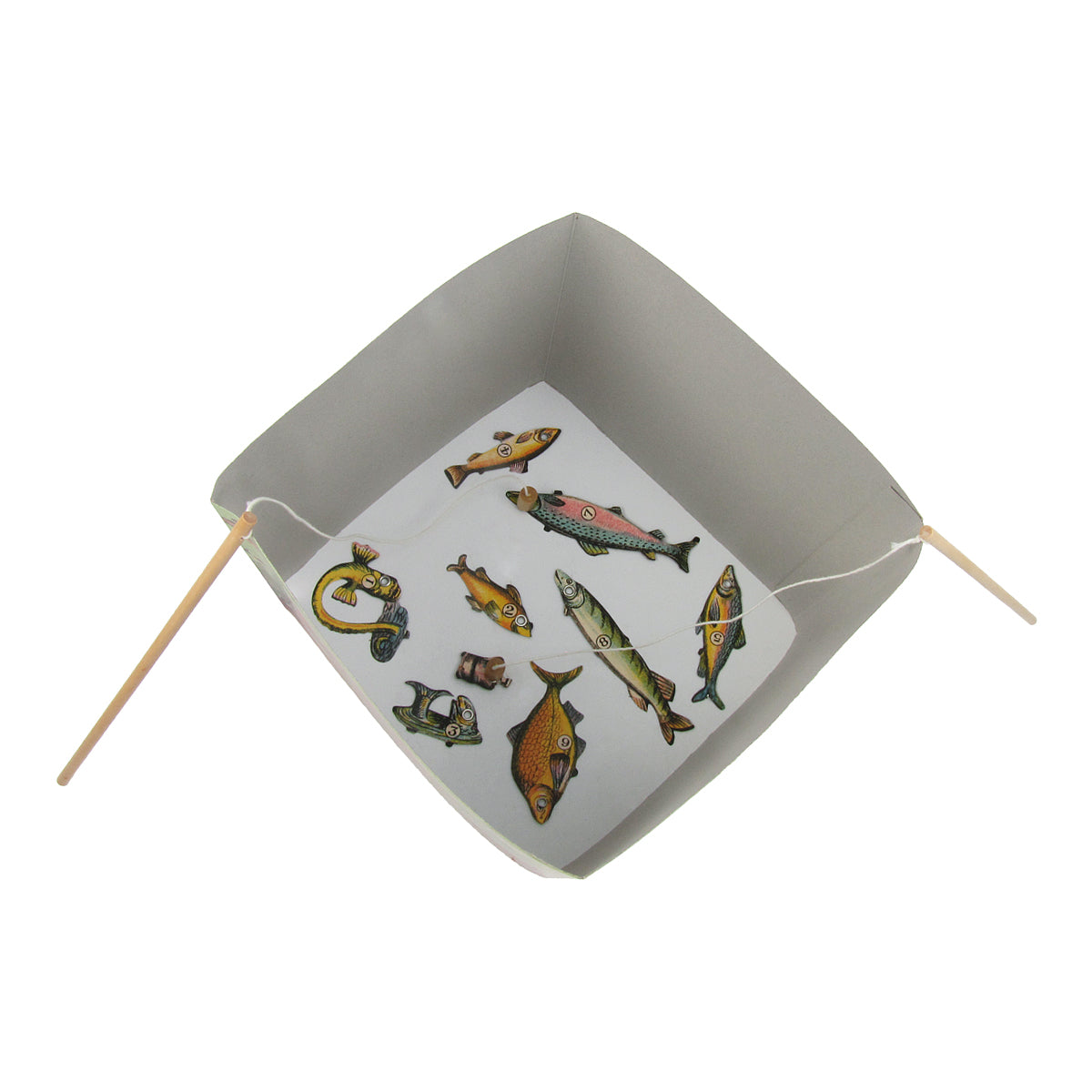Gone Fishin' with this classic and retro magnetic fishing game set. This game is great for kids of any age. The game set features a box tank to place the magnetic fish in. Each player takes one of the 4 toy pole rods with magnet and catches as many of the 12 fish as possible with the poles. Compete with your family to see who is the true master of the seas. The dimensions of the box tank are 12" Long, 10 1/2" Wide, and 10 1/2" Tall. This retro fishing game set ships brand new in manufacturer's packaging with our 100% Customer Satisfaction Guarantee.