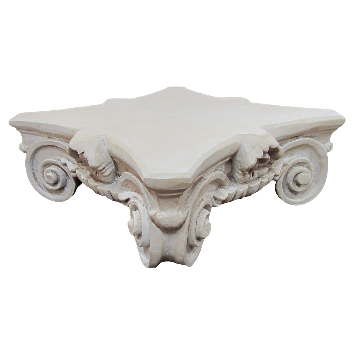 Display your plant with pride on this Concrete Roman Garden Planter Display Stand fit for a Caesar. The Flower Pot Holder features a unique Corinthian type styling in a white coloring. This Concrete Garden Planter Display Stand adds a traditional touch to your patio, yard, or home decor. This regal column stand will be sure to impress friends and family. The Roman Garden Planter Display Stand measures 14" Long and Wide and 5" Tall, and weighs an impressive 17 lbs. The Flower Pot Holder ships brand new in manufacturer's packaging with our 100% Customer Satisfaction Guarantee.