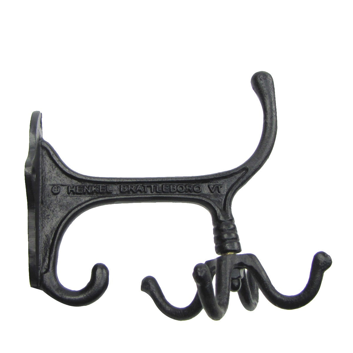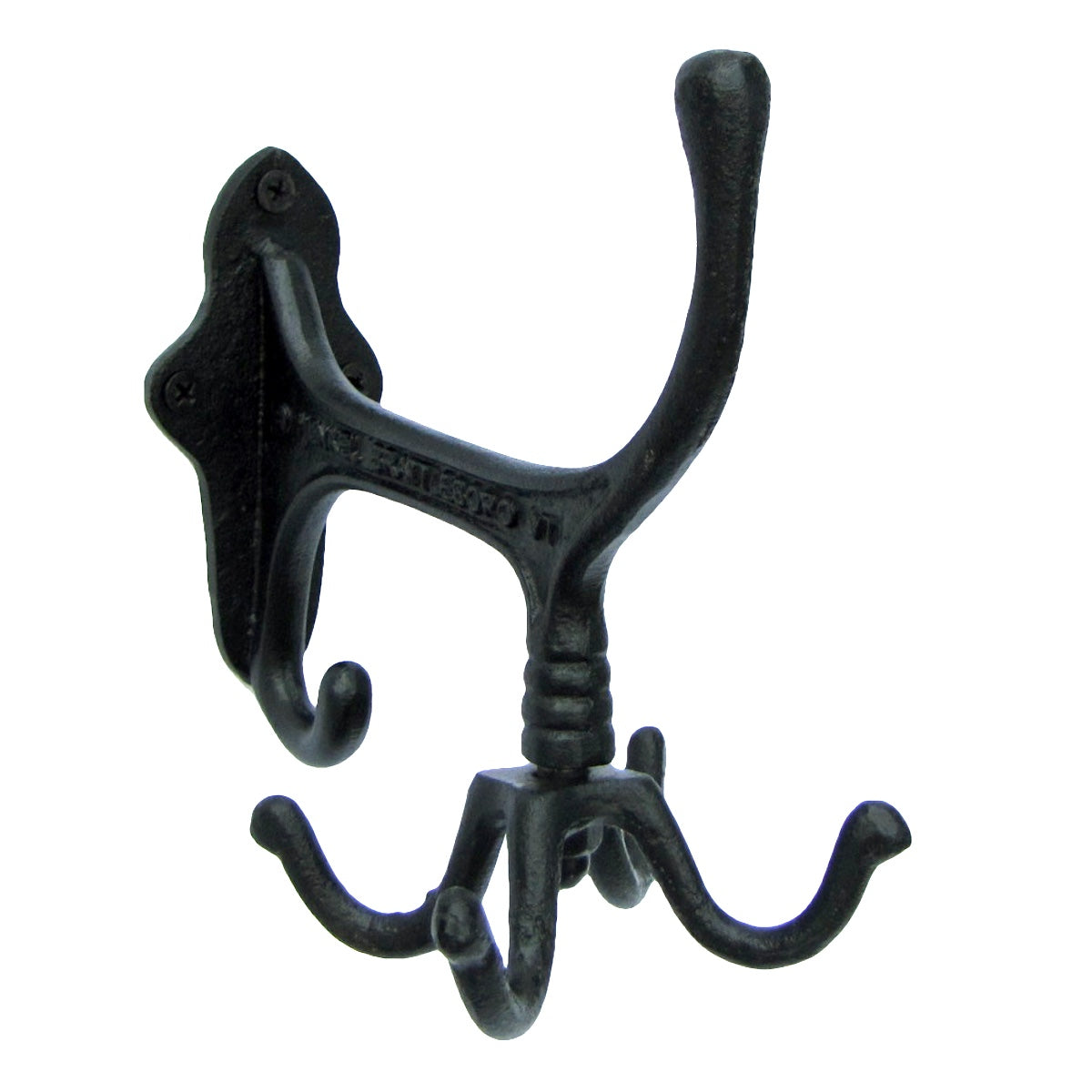 - Vintage and antique style Metal Wall Mount Spinning Coat Hook Hanger, with a black powder coat finish for durability