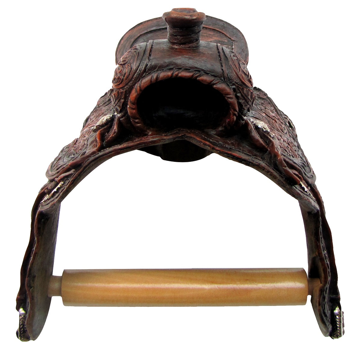 - Great rustic decor for a cabin or lodge, the western saddle toilet paper tissue holder is made from cast resin with a clear enamel finish