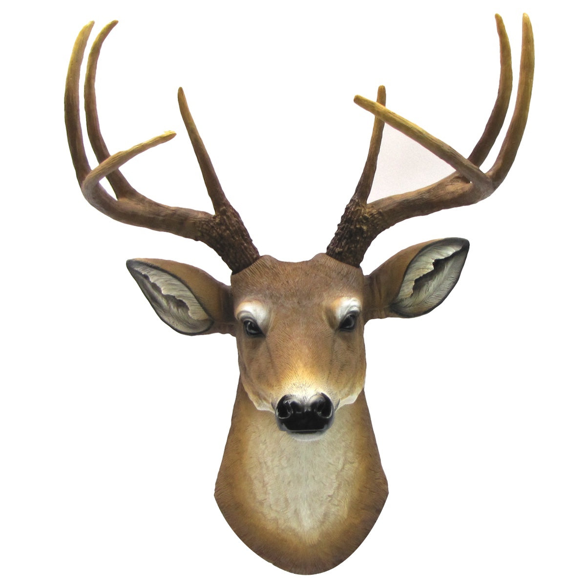 Add some rustic decor to you hunting cabin, lodge, man cave, or home with this fake taxidermy 8 point deer shoulder bust. Made from resin with amazing detail, this buck head wall mount looks just like a real deer wall mount. This 8 point buck measures 21" Tall, 16" wide from point to point, 14" deep from the wall, and mounts to your wall with the keyhole shaped mounting bracket on the back of the mount. Weighing nearly 8lbs, this is a very high quality resin fake taxidermy shoulder bust that will impress visitors and spark lively conversations. Perfect decor to add to your man cave, hunting cabin, or lodge, this 8 point buck deer wall mount ships brand new in manufacturer's packaging, with our 100% customer satisfaction guarantee.