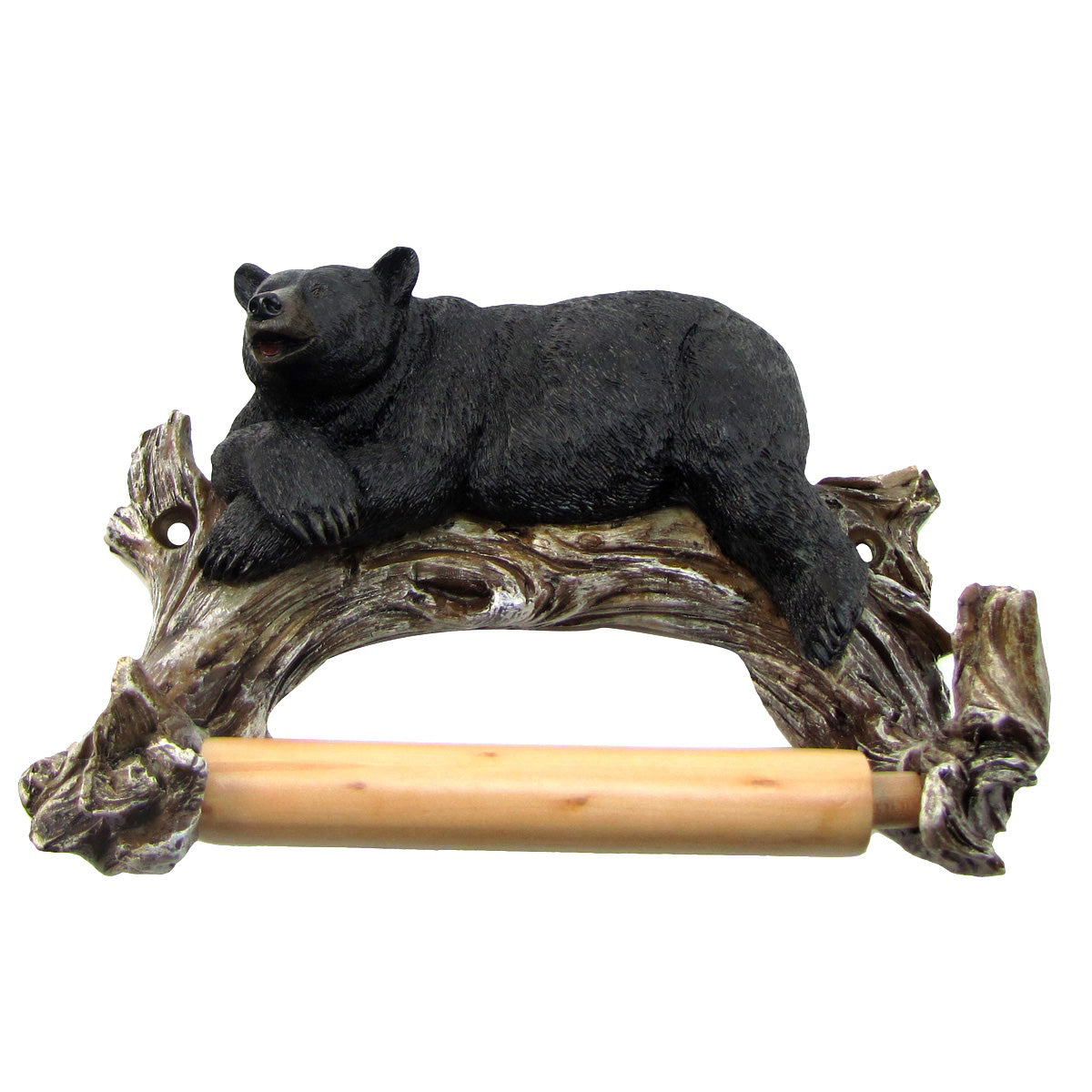 • Great wildlife decor, this Lounging Bear Toilet Paper holder features a Black Bear Lounging on a tree branch