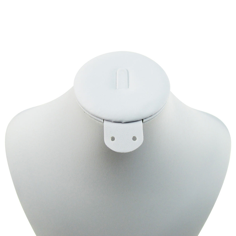 - This neck display bust form is made of white leather fabric, featured by great softness which is particularly beneficial to jewelry, pendants, and necklaces