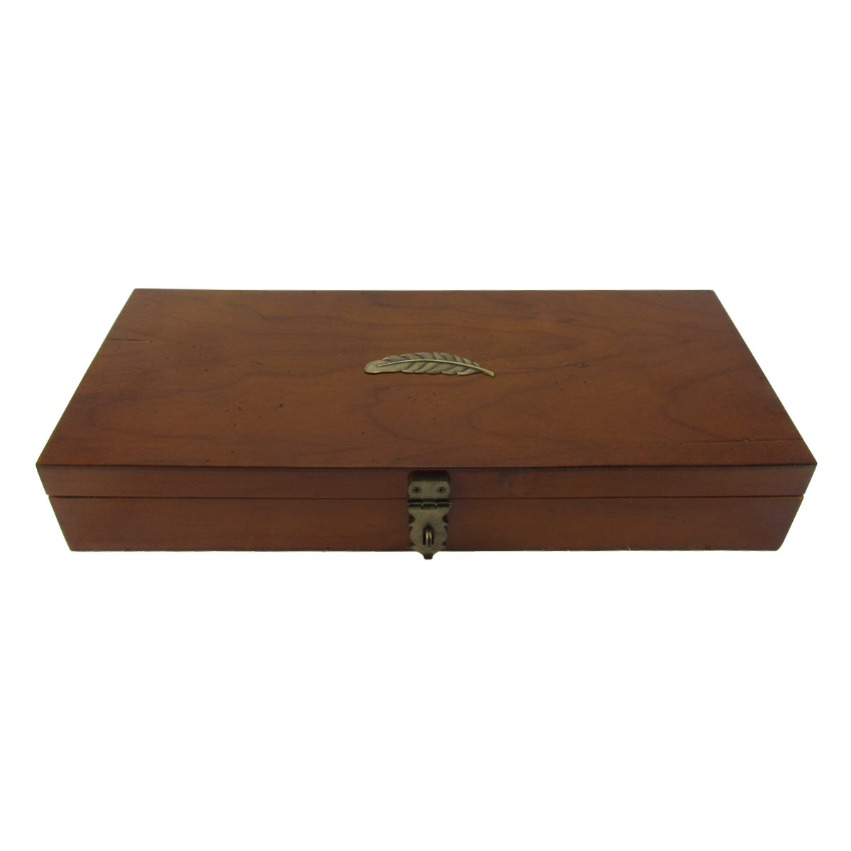 Brass Stamp and Glass Stylus Writing Set with 5 Color Ink, Spoon, and Burner in Wood Box Features: